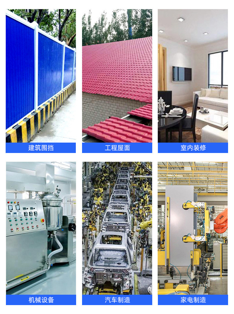 適用范圍:門式鋼結構廠房、化工廠房、倉庫、沿海建筑等領域,工業行業以及養殖、裝飾行業。