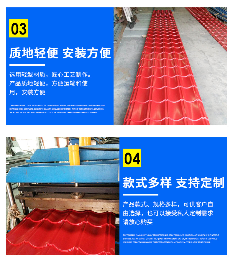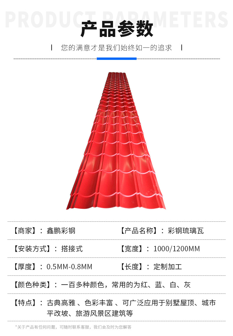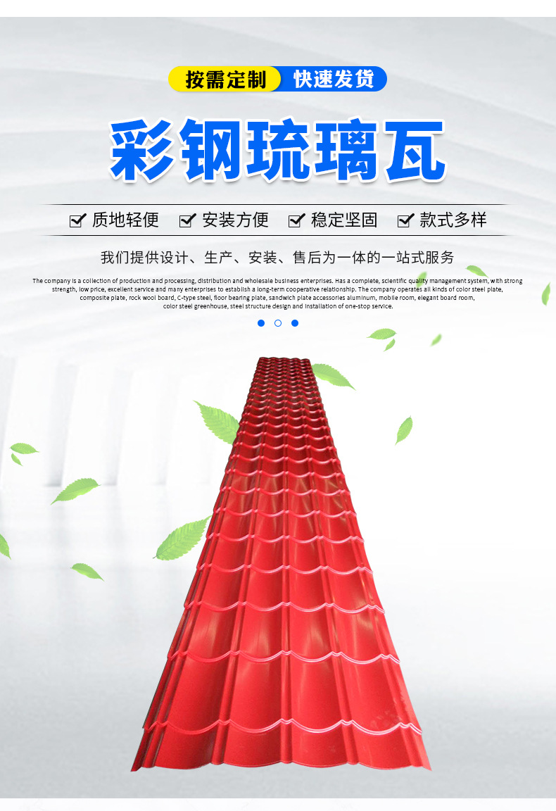 定制仿古彩涂彩鋼琉璃瓦屋頂隔水瓦楞板鋼結構隔熱鐵皮瓦