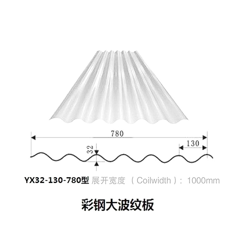 3、32-130-780波紋板適合于現代化大型工業建筑,充分展示剛柔之美,抗風抗震性好
